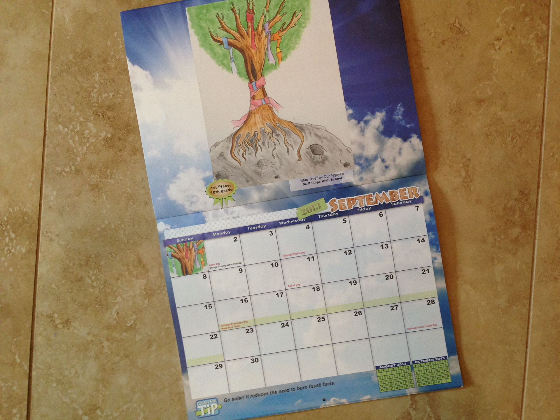 “Art 4 Clean Air” was a student art contest inspiring young people to create art to communicate actions that help keep our environment free of pollutants. Winners of the contest had their art featured in a calendar sponsored by Orange County Environmental Protection.